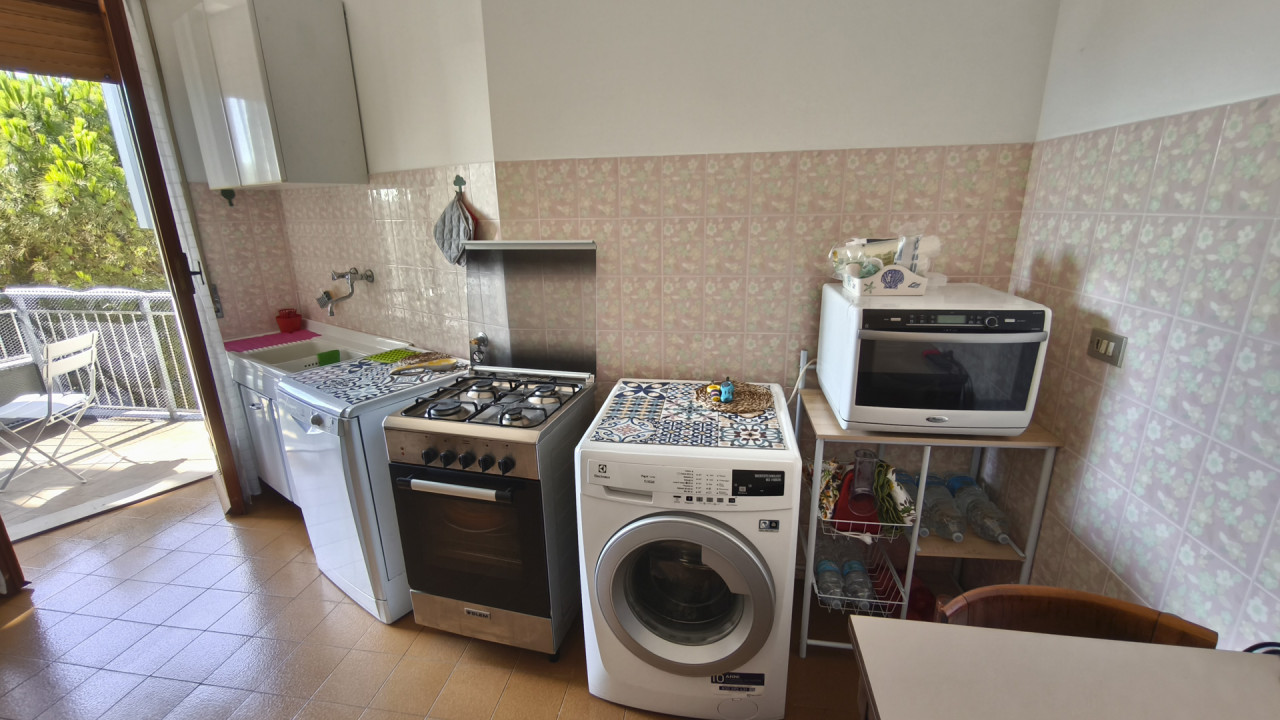 Ottimo Trilocale situato a pochi passi dal mare, dalla pista ciclabile e dal supermercato. Immerso in un complesso residenziale tranquillo, questo appartamento al terzo piano, servito da ascensore, offre un ambiente luminoso e accogliente. L’ingresso conduce a un soggiorno spazioso e a una cucina abitabile, perfetta per conviviali cene con amici e famiglia. La zona notte è composta da due camere da letto confortevoli, ideali per il riposo, e un bagno dotato di vasca e finestra, che garantisce luminosità e ventilazione. Due terrazzini permettono di godere del sole durante tutto il giorno, mentre il riscaldamento autonomo assicura un comfort ottimale. Inclusi nel prezzo, un garage di circa 14 mq e un posto auto esterno di circa 12 mq in area recintata con accesso tramite sbarra ad apertura automatica, rendono questa offerta ancora più interessante.